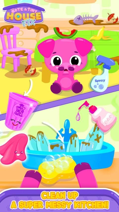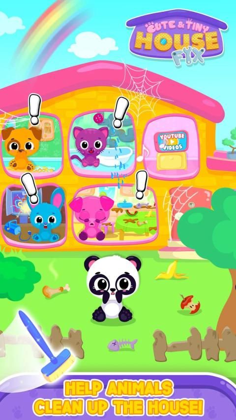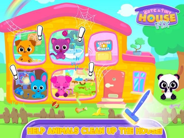 Have fun cleaning and decorating baby animals’ home in Cute & Tiny House Fix game for preschool girls and boys! Help kitty Sue, puppy Bu, bunny Blu, panda Choo and piggy Lulu make their mini house clean, pretty and cozy! Tidy up different rooms and a messy backyard! Teach your little ones cleanliness and improve their sense of responsibility with Cute & Tiny House Fix kids game!