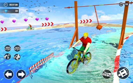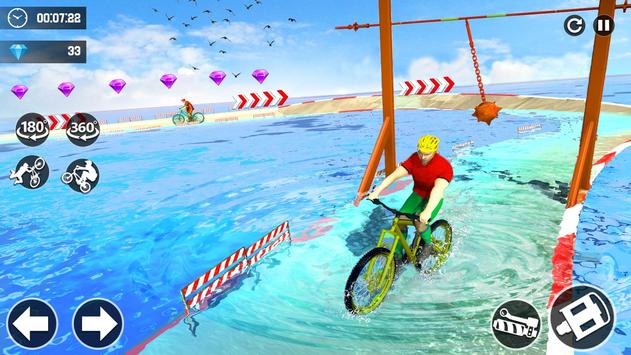 In this Bicycle Stunts Extreme Racer 3D: Impossible Tracks, ride fast and be a king of high jumps ramps with giant cycle racer. Choose your best rider from garage. Take hold on mage ramps. Jump from one ramp to other speedy as like reckless racer stunt master. Time is short to complete the task so ride fast & fast to fulfill the riding skills. Perform as solo stunts and unleash your inner beast. On high ramps with bicycle stunts use the speed to cross it. Collect all diamonds and stars to unlock the new ramps and bicycles. Number of cycles here to perform stunts but you have to first unlock them to ride on. Jump on heavy bicycle and start the missions. Enjoy the variety of heavy giant cycles with stunts ramps on trial tracks. The ultimate riding with multi action bicycle stunts avoid to jump in water otherwise level will fail. Enjoy Cycle Stunt on Impossible Track & Be Trick Master of Reckless Cycle Racer.