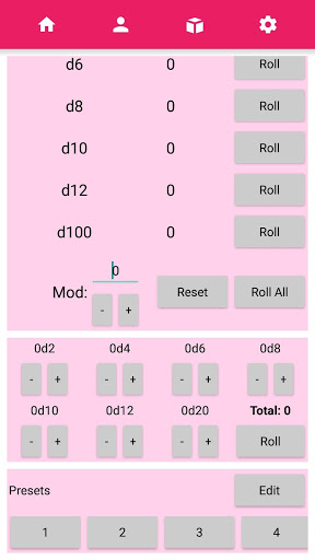 - Up to ten customizable presets allow even quicker rolling of dice combinations.
