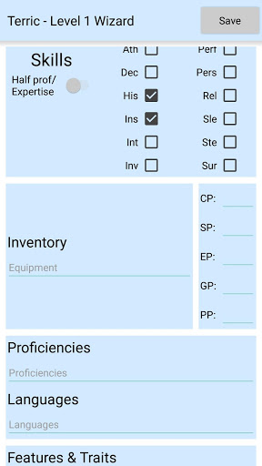The D&D Player Companion is a great substitute for old-fashioned pen & paper, optimised for the table-top role-playing game, D&D 5th Edition. It has everything a player needs to keep track in-game, with a Character Sheet and Dice Roller.
