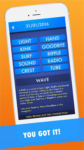 • Find the word that connects the daily anagrams to complete the daily puzzle.