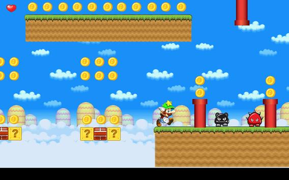 Gino´s World this fun and amazing adventure game is better than ever and will surely be what you are looking for. Like side scrolling adventure that will rock you through 18 levels of challenging running and jumping. This retro-gaming classic will turn your Gino´s World - loving heart on end! To play you simple touch the screen to jump and touch quickly twice to double jump. You can jump over your enemies to kill them and your goal is to guide Gino´s World to the end. Download Gino´s World now! It is a fun game for everyone. Try it out and enjoy!