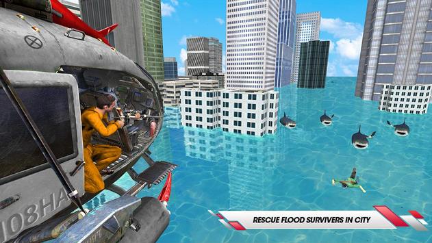 Rescue the flood victims by attacking the shark through helicopter, boat and above the building