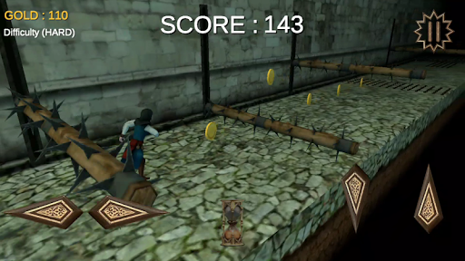 an endless run game with many deadly traps , escape from the unknown entity and try not to fall in a pit or slice with cutting traps as much as you can .