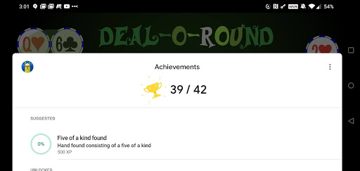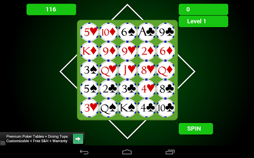 A fun tile-matching puzzle game where matching rules are based on poker card combinations with a hint of slot machines. Find poker combinations on the table and gain points! Visit our website http://dealoround.com to learn more about the game rules. Give us feedback on our Facebook page.