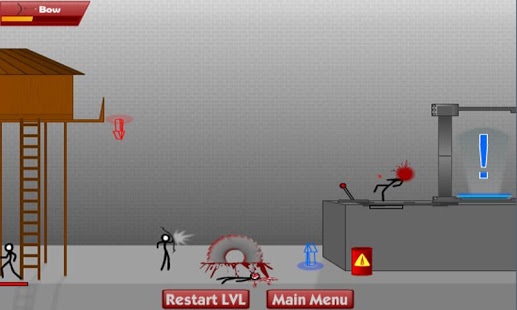 Enter the Stickman Death Arena, but be warned it's not a friendly place! With all the blood flying around you'd do well to bring goggles (also a machine gun and some grenades wouldn't hurt)! Find other stickman and shoot, and slice them to pieces as you make it to the exit.