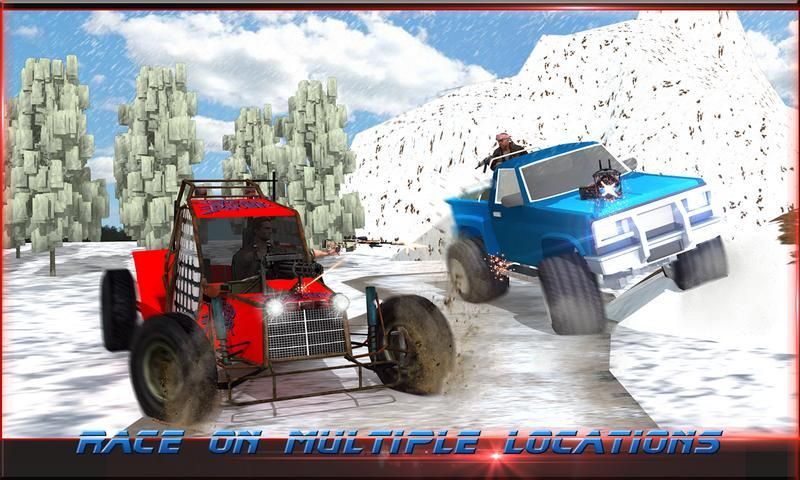 The game is built to revive the intense battle mods and strategies. Built in multiple locations like snowy tracks, high mountains and frustrating deserts with sun at 11 o’ clock, we hope to provide you with the best of gaming experience so we have made this game much versatile and very adventurous. It is more fun when to get to choose your ride, with massive firepower implanted on them. This type of artillery is only famed from the best battleships of modern era. Utilize this firepower and take out multiple enemies at a time or take them out one after another. Your rivals will bring their best to kill you and throw you off track, because only one person alive will cross the finish line.
