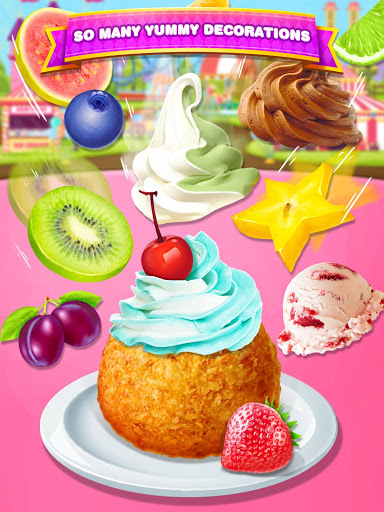 Decorate the deep fried ice cream with so many decorations. Cream, fruit,sprinkles,even with candy. Do whatever you want. You will be the greatest chef ever.