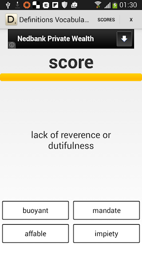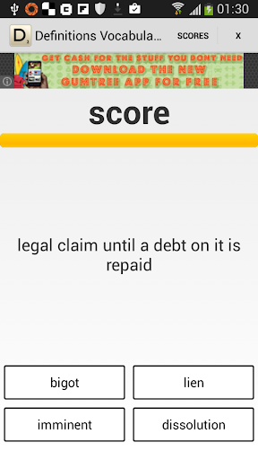 would be nice if when incorrect the correct answer is given. timer does need to be extended especially for lengthy definition. also would be fun if can play with friends