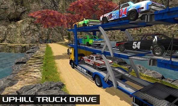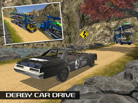 The demolition derby in car wars arena has just ended and here comes this challenging job of transporting derby cars on a huge derby car transport truck to the showroom garage located offroad. This transport simulation begins with driving a huge derby car transport truck on difficult highly twisted curvy offroad in hill city. In this thrilling offroad car truck transport drive enjoy loading derby cars parked in demolition derby arena and carry them to the final point while exhibiting your amazing truck driving skills. So get ready for a thrilling truck driving adventure in the rocky mountainous area of your country where river is flowing deep down the mountains and any wrong move would be fatal. Be the perfect car transport truck driver in this offroad derby car transporter game.