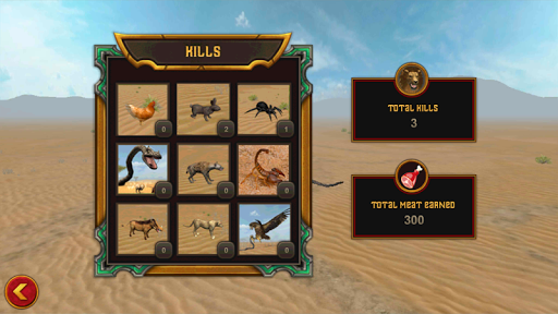 Battle against Warthogs, Lion, Rabbits, Scorpions, and Cheetah.