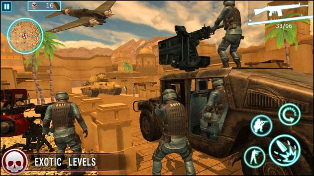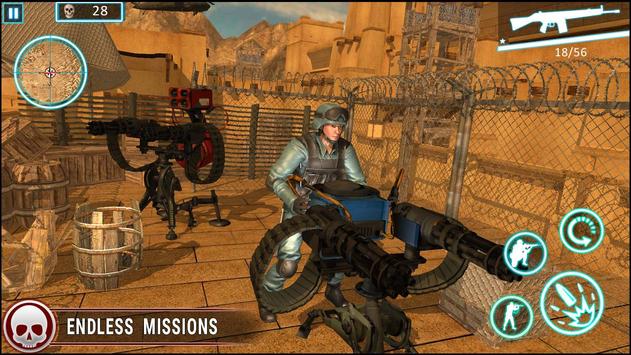 It modern warfare where enemies have started a infinite critical strike against us. Commando! we are left with no choice but to start a brutal operation against gunship and heavy weapon like machine guns, bazooka and sniper. doom the enemies with dust in this desert storm game and eliminate there combat squad. It your duty and you are call for the infinite war as the real combat commando. It's a real gun games as you can mobil strike against your enemies warriors with the most modern warfare weapons ever available in any war game on mobile. counter terrorist with the limit of time and save your nation from assault of fighting games. Enjoy this tactical first person shooting action game.