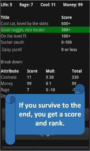 Detective's Choice is an RPG text-based adventure that will engross you in a story line while allowing you to make the decisions that will determine your fate.