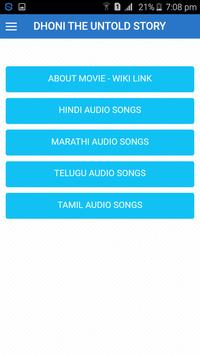 3) Audio songs: You can listen songs from the "MS Dhoni the untold story" movie. These songs are available Hindhi, Tamil, Telugu and Marathi languages.