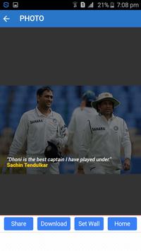1) Photos : Dhoni's latest photos available in the app, Photos can be downloaded, share and set as wall paper options are available. We will keep upload the new photos.