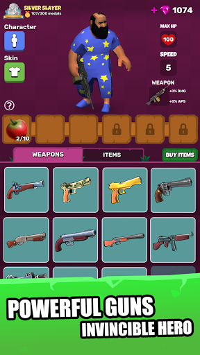 Upgrade your weapons and character with over 50 unique upgrades. Unlock countless weapons, each with unique upgrades and abilities. From the piercing beam of a laser gun to the explosive power of a goblin grenade, every weapon is a tool for survival. Special items are available to boost your skills, from a plant that heals to a cookie that boosts your energy.