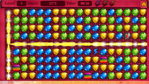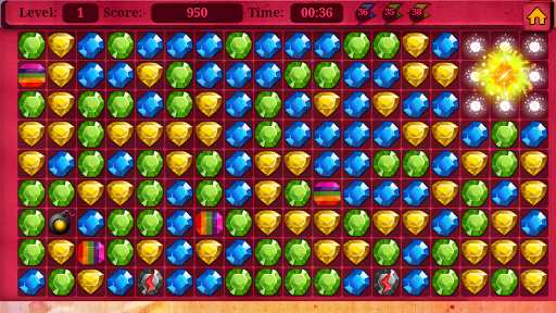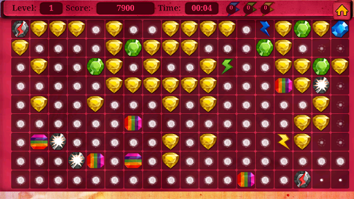 Complexity will increase as the new Diamonds will get filled from bottom and you would need to make hurry to complete the level. If the Diamonds reaches to the top, you are gone. Bombs will help you often to clear out the level. There is time limits to complete the level. You have to crush certain number of Diamonds in limited time to complete the level.
