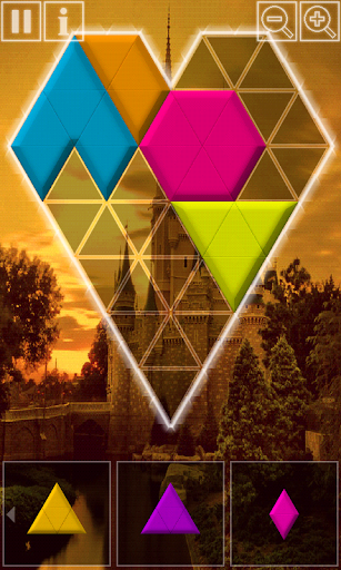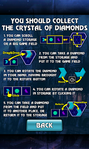 You need to collect the mosaic of the diamonds. Diamonds consist of triangles and they are shaped differently. You can rotate the diamonds. The game has 45 levels. The game develops your mindset and memory.