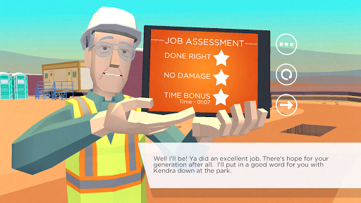 It’s not all work. As you build up your reputation and get noticed as a skilled operator, you will be approached with special bonus challenges. Block all the boulders from getting past you as they race downhill. See how quickly you can score some baskets in a game of excavator basketball. How about some larger than life mini-golf?