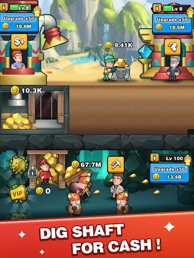 Digger to Riches is an idle tycoon game. Get a brand new art upgrade from the old miner game, where you can hire the best miners to work for your gold mine, collect a lot of gold and become a millionaire