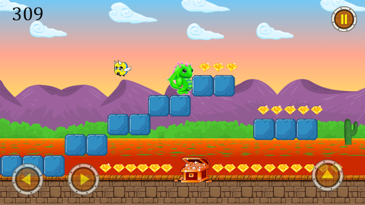 The green dinosaur game is a game of adventure and running and jumping on things