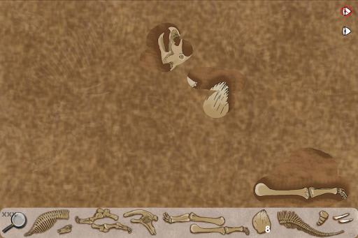Use your finger to uncover dinosaur bones. Find the bones at the bottom of the screen to complete the dinosaur skeleton. When you find the correct bone press on it to collect it. But be careful, choose the wrong bones 3 times and the game will be over.