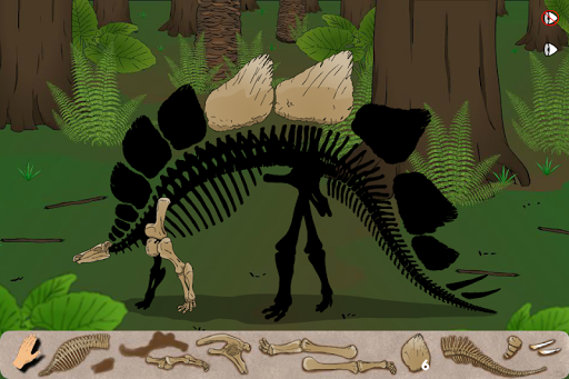 After you find all the dinosaur bones you will proceed to the next section of the game. In this section drag the bones to its corresponding location to complete the dinosaur skeleton.