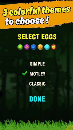 Get a high score by surviving as long as you can (endless if possible). Eggs move down continuously from slow to faster and then crazy faster. Some time new eggs is drop down, if you miss hit it. New egg is generated after that. There are a lot of bonus types (multiple 2,3,4 times) help you to get best score. You can get bonus score too when hit vibrating eggs.
