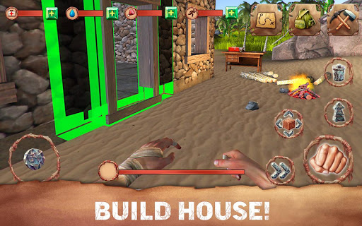 Collect items, get different resources, cut down palms, build own house in new survival game.