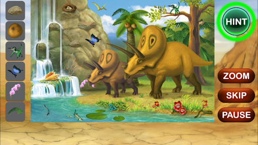 Dinosaurs Hidden Objects is most beautiful hidden object game. Enjoy cute scenes from Jurassic period with lots of hidden items. Find dinosaurs, color elements and different nature parts. You goal is to find series of hidden objects on each level. Use Hint and Zoom buttons to find items quickly. If you can not complete any level you can simple skip it and try to complete it later. Completed levels will be unlocked and you can replay them with different hidden objects set. When you complete the game press More Games button to install more hidden object games.