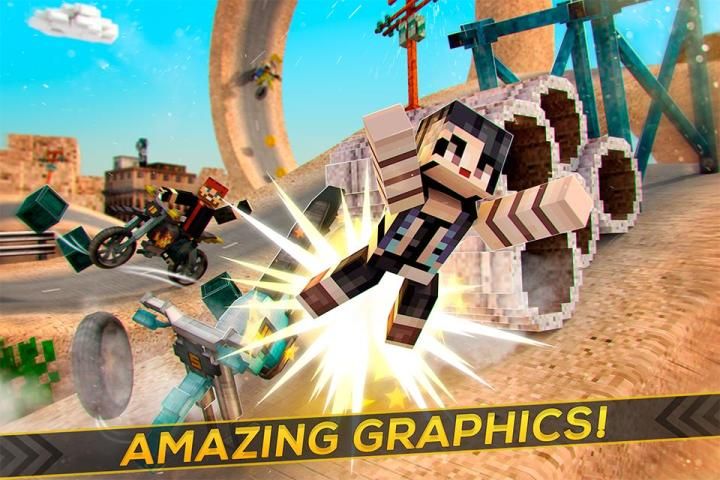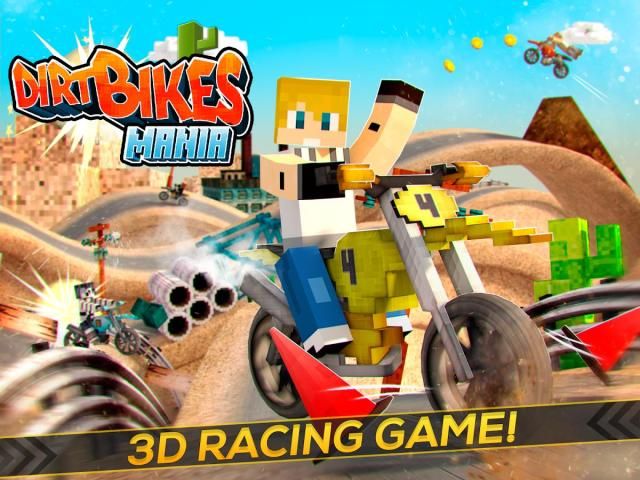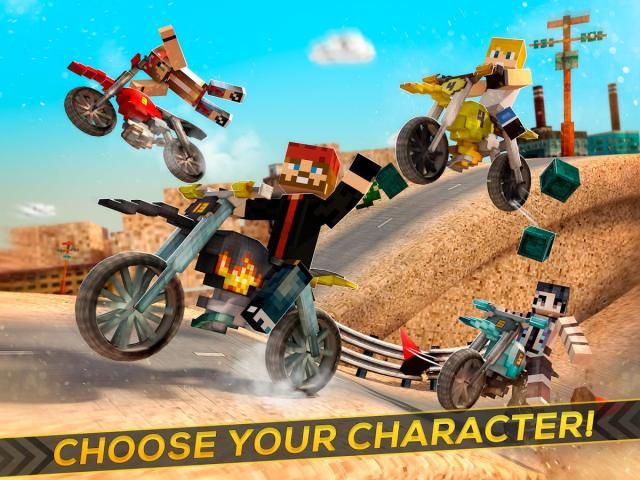 - Scenarios and blocky pixel motorbikes