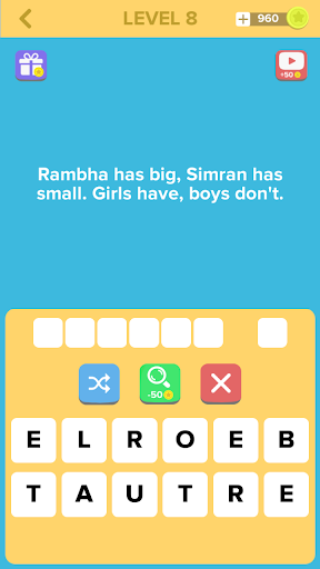 In a solution to that, we came up with this incredible brain training game called “Dirty Riddle” in which you can keep exercising your brain whenever you want by solving tons of cool riddles. And to make it more interesting we added some logical and fun double entendre brain riddles in it with hidden answers, which will make you fall in love with this game.