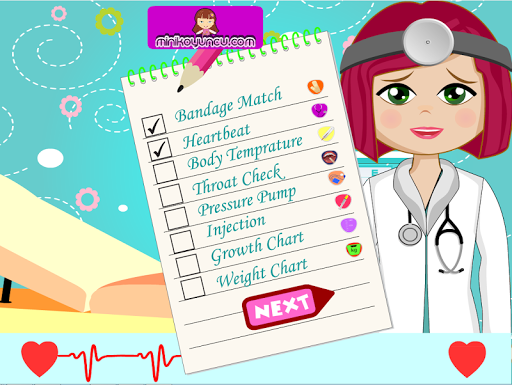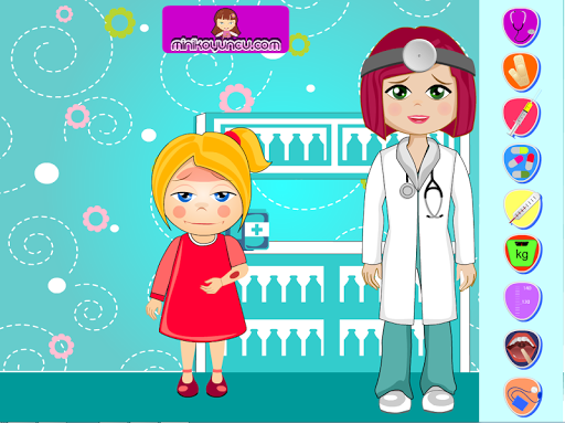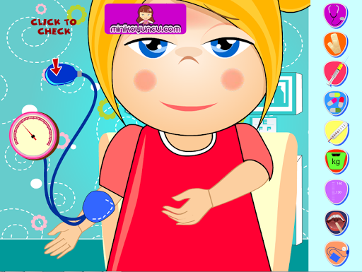 Doctor Amy very good doctor. She likes children. She is children Doctor. Childrens love her too. Today Doctor Amy has patient. Kid is injured. And Kid needs check up. In this game you can help Doctor Amy. You can measure tension, checking up weight. Doctor Amy needs your help.