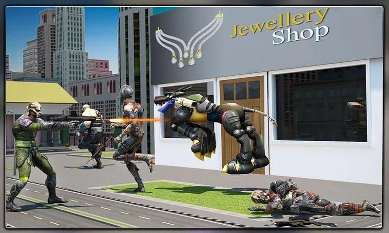 The advanced features of dog transformation into clicker hero take you on an adrenaline that filled with dog robot rescue missions. Take control of your city hero or dog hero and chase the mad terrorists in one of the most intense dog hero games. If you’re excited for futuristic fighting games and robot transformation games, then you’ll love this crime battle. Challenge yourself as a perfect trained hunting dog and chase all the foes to remove crime and create peace in the city, unseen in mutation games. So what are you waiting for? Download DOG TRANSFORMATION INTO SUPERHERO: RESCUE OPERATION, transform your dog superhero and defeat foes to safe the humanity to become the hero of this city police simulator.