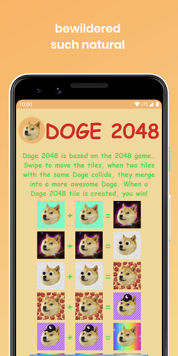 Swipe to move the tiles, when two tiles with the same Doge touch, they merge into a more awesome Doge. When a Doge 2048 tile is created, you win!