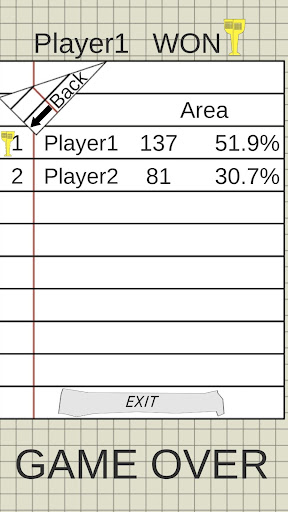 Dominator. Capture alone or with friends empty territories on a paper sheet, playing for the red, blue, yellow and even for the green kingdom.