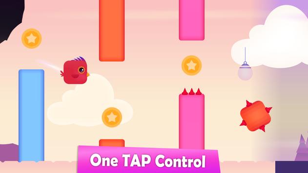A red birdie who tries to keep itself in the air. Tap the phone screen to flap his wings and fly up.