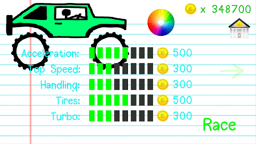 Win the races to earn coins in order to buy new trucks or upgrade the speed, acceleration, handling, tires, or turbo of the trucks you own.