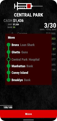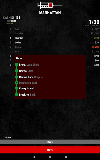 In DopeWars, you are a drug dealer moving from one borough to another, buying and selling drugs to earn as money as you can.