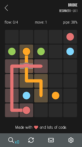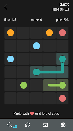 Connect matching colors (dot) with pipe to create a match flow. Pair all colors