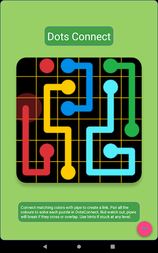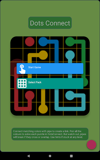 Connect matching colors with pipe to create a link. Pair all the colours to solve each puzzle in DotsConnect.