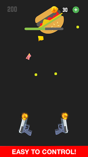 Shoot as per the food objet appear on the screen. Shoot more bullets for big food objects.