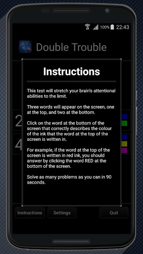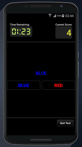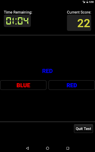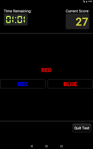 For example, if the word at the top of the screen is written in red ink, you should answer