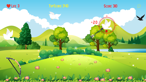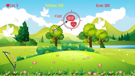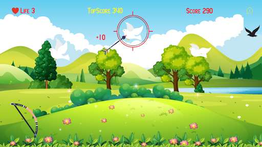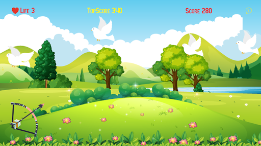 Drag the bow and release the finger to shoot the flying doves.