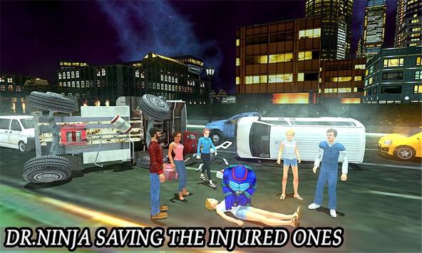 Become a shadow ninja turtle warrior and fight bravely like a real hero ninja turtle flying warrior to control gangsters in the city. Army is busy in war with terrorists and you have to play the role of super hero ninja turtle to rescue the city as being a professional Doctor. Dr. Ninja is not only battle against dangerous gangsters and terrorists but also rescue mission to help injured people with your superhero flying skills. Fly high in the sky as real ninja turtle hero and fight bravely with the gangsters mafia to become a real ninja fighter in grand city. Dr. Ninja rescue survival has many rescue and survival missions and as a brave shadow ninja hero turtle warrior you must be able to save people and injured citizens with super power rescue skills. Be the Super shadow ninja turtle in action simulator to fight against the terrorists squad. Use your advanced shadow ninja master mind and advance shuriken accurately and kill the gangster squad in city survival mission 2017. Now get ready for ninja shadow survival rescue missions for city people. Show your extreme shadow flying nija action stunts for big city rescue survival in this amazing Dr. Ninja Action game.
