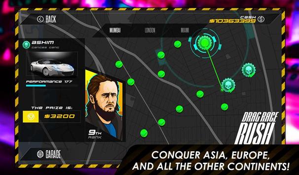First stop is Asia. Then step over to the next continent, where all Europe's best drag race drivers are lined up. Finish your quest in America, going all the way to Colombia. Finally race your latest enemy in a final drag race.