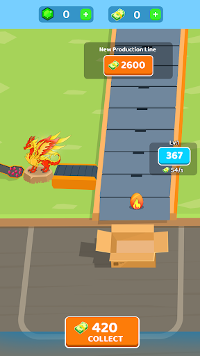 Starting with a small dragon factory, the dragon eggs are packaged and sold. Use the money to level up and evolve your dragons. The higher the dragon level, the faster the laying speed and the more the egg price. Open up a new production line and fill your boxes with your rare dragon eggs.
