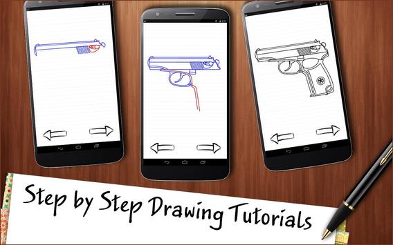 You will change your mind about drawing lessons with our Guns and Pistols application. Install the application on your mobile phone or tablet and get detailed step-by-step lessons on drawing everything that you like. Begin your training in drawing when you want and "pistols and handguns" application will become your best teacher.