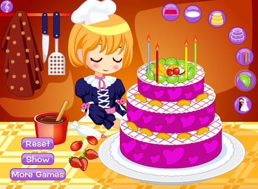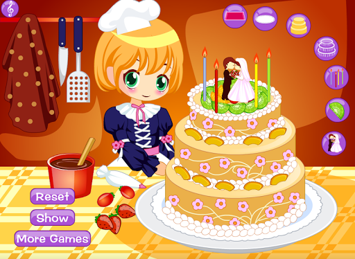 wedding make-up and wedding dress-up. In this cooking game, you will firstly start with the making of wedding cake in the cakes making factory. In this cakes making factory, you will start your work with the cake making, and then the design and decoration part will come. In this design and decoration section, you will be provided with the variety of different fruits, creams and candies.