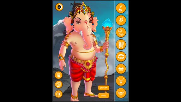 Dress up game - to decorate Ganesha Character with various accessories and costumes.